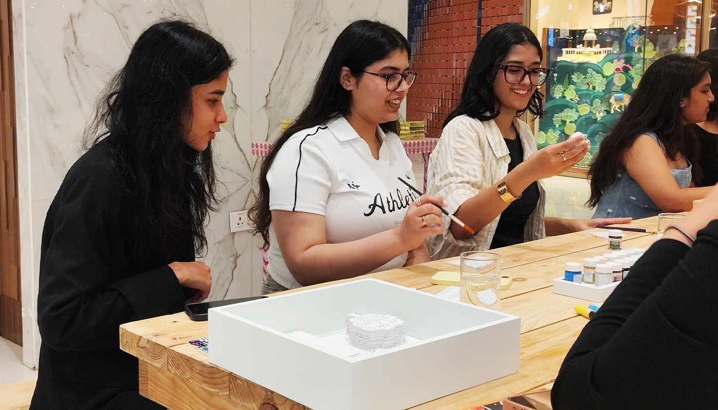 Following the walkthrough, the experience transitioned into a miniature painting workshop, offering an intimate understanding of the techniques that inspired the installation. Participants engaged with the meticulous discipline behind this centuries-old craft - layering pigments, refining brushstrokes, and balancing composition with restraint. The process mirrored the essence of design itself: patience, precision, and purpose. The workshop demonstrated how ancient craftsmanship continues to shape contemporary creative practice, bridging tradition with innovation and heritage with forward-thinking design. Learning through engagement, observation, and creation.