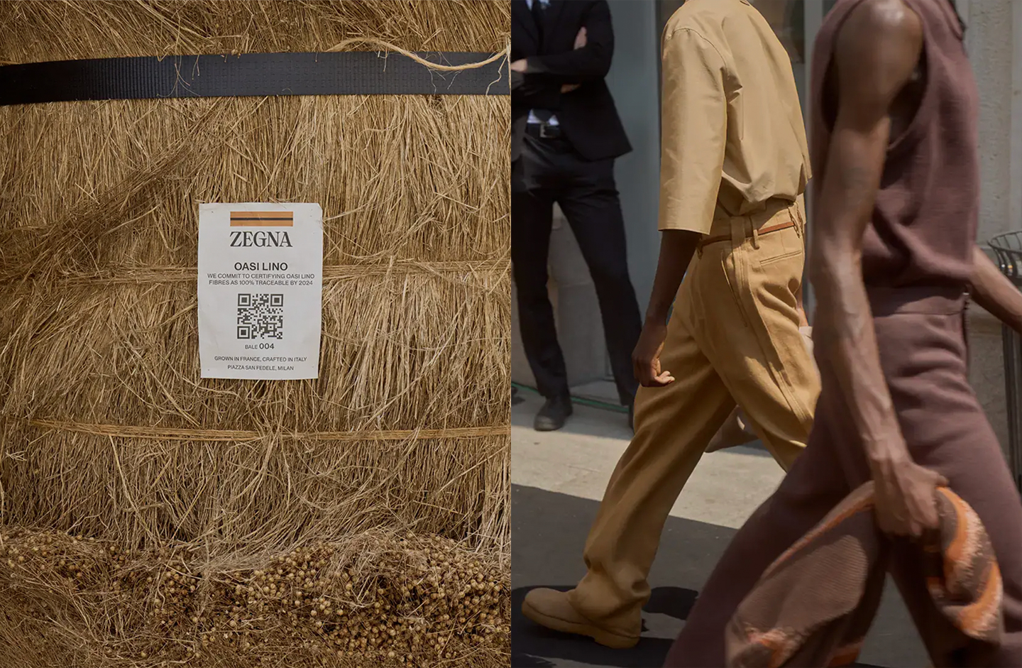 These will soon be sent to the Zegna factory, made into fabric and become the items for Spring-Summer 2024. Alessandro Sartori, artistic director at Zegna (and Istituto Marangoni alumnus), recreated a perfect circular economy in the Oasi di Lino in the centre of Milan.