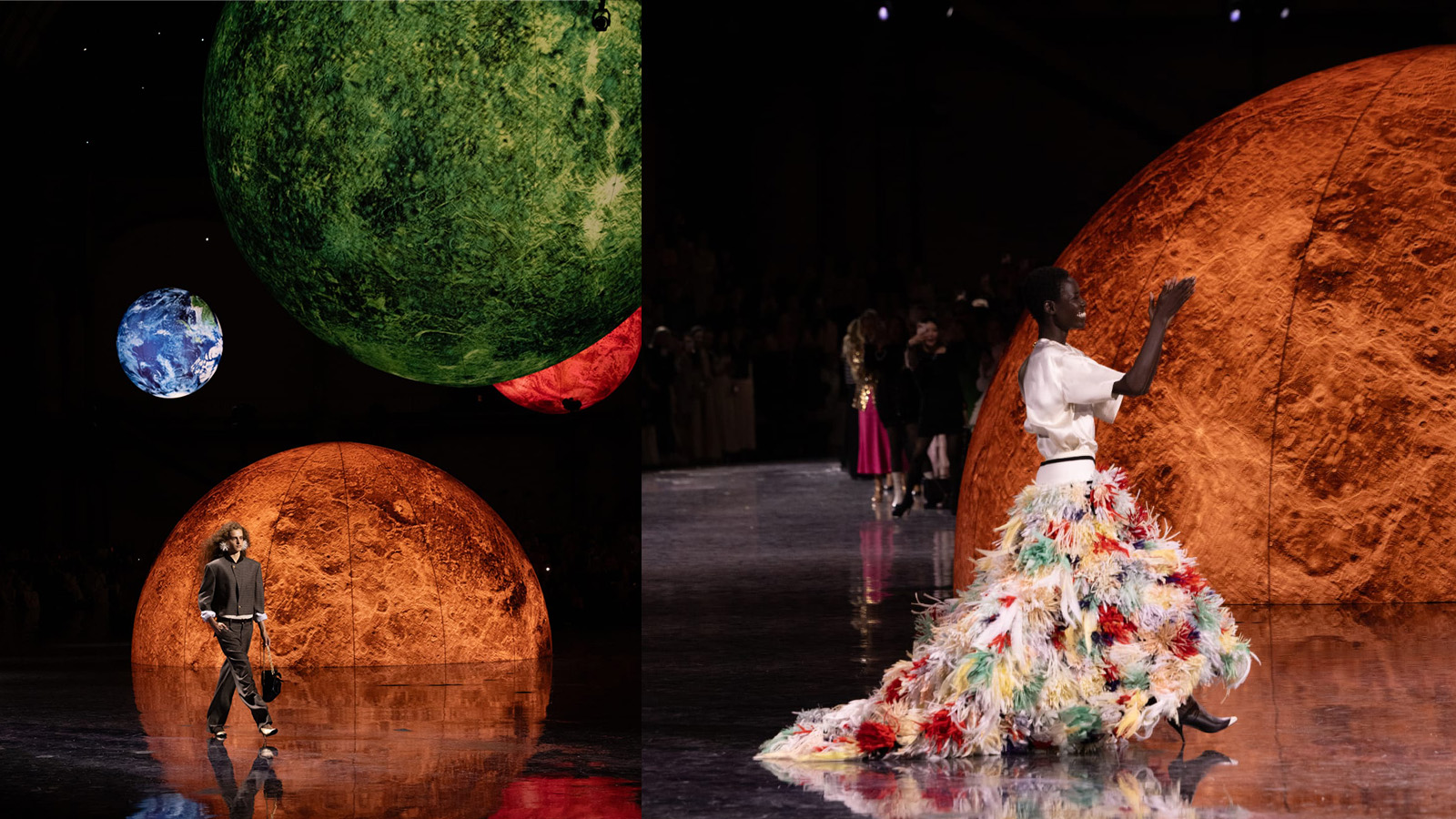 As the lights dim at the Grand Palais in Paris, it doesn’t feel like darkness. Instead, it feels like the moment before a dawn you didn’t know you were waiting for. Hanging above the runway, planets spin in slow motion, their surfaces brushed with metallic light. Shooting stars streak across the ceiling, and at the centre of this perfectly choreographed universe, a new sun rises: Matthieu Blazy, making his long-awaited debut as Chanel’s creative director.