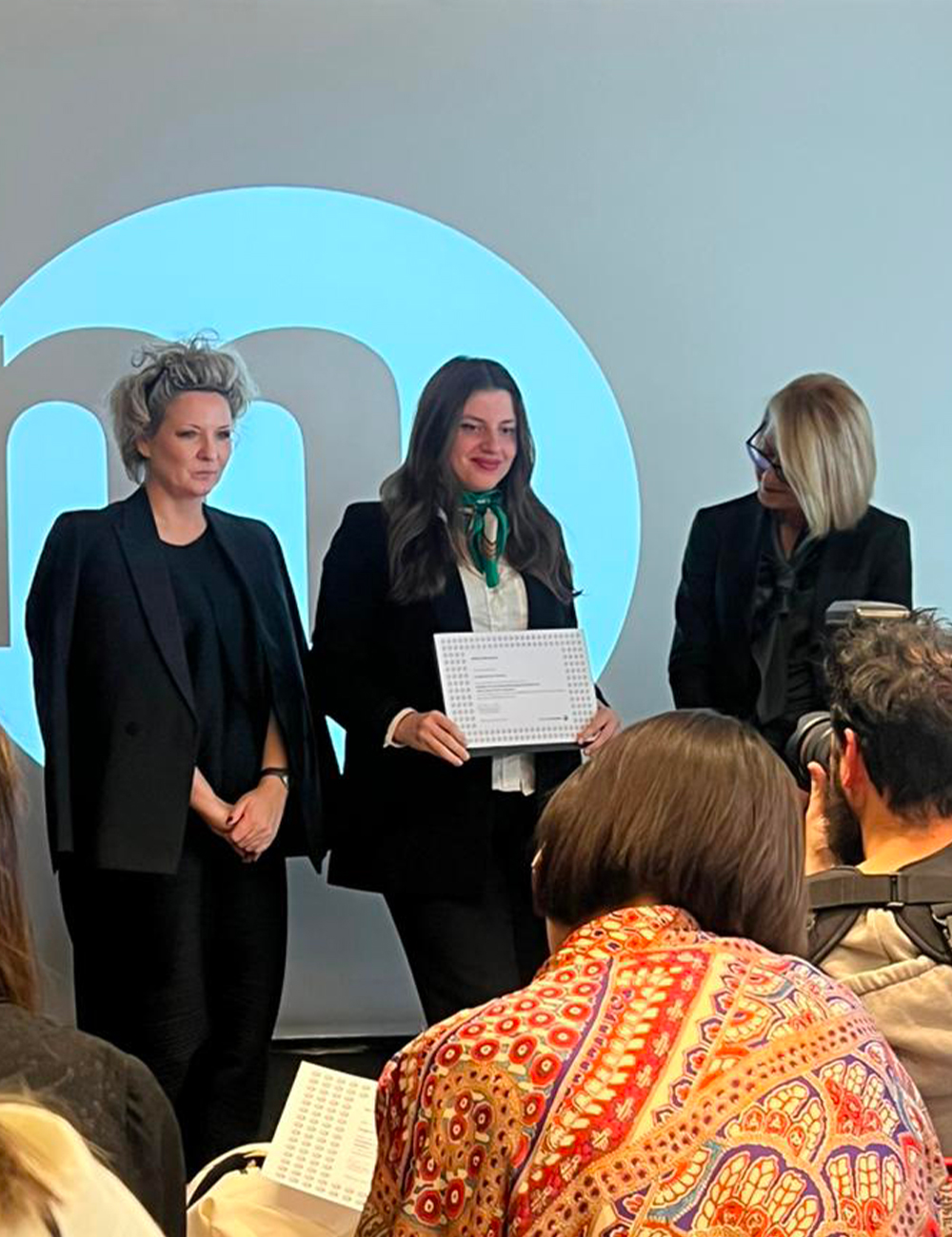 ESDEN student Krystina Kulsha with Diana Marian Murek (Director of Educaction) and Barbara Toscano (School Director) at Istituto Marangoni Milano