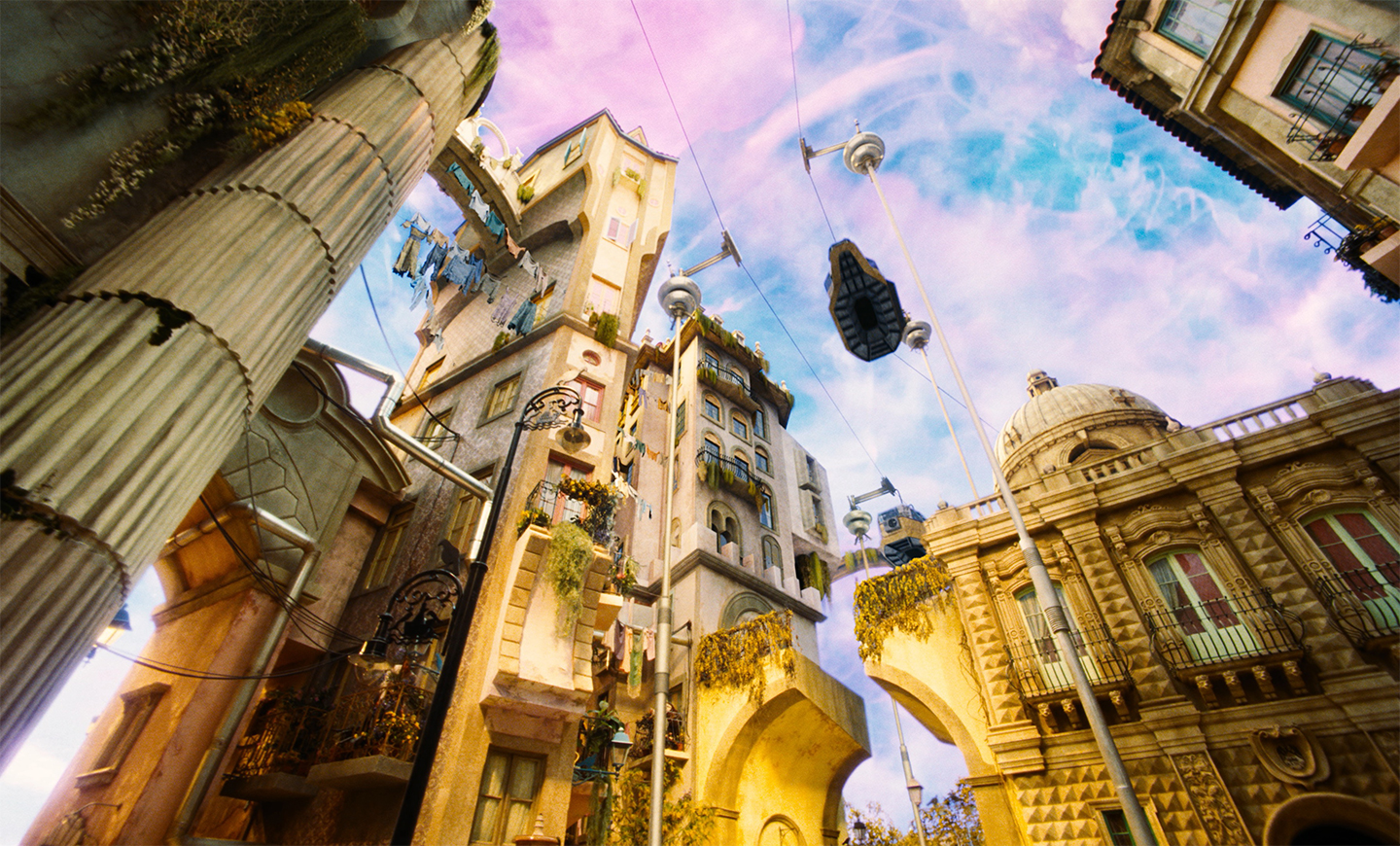 The vibrant chromatic assonances, referencing surrealist painters and a dystopian futuristic landscape with details from disparate periods, propel the visual narrative to a quantum leap.