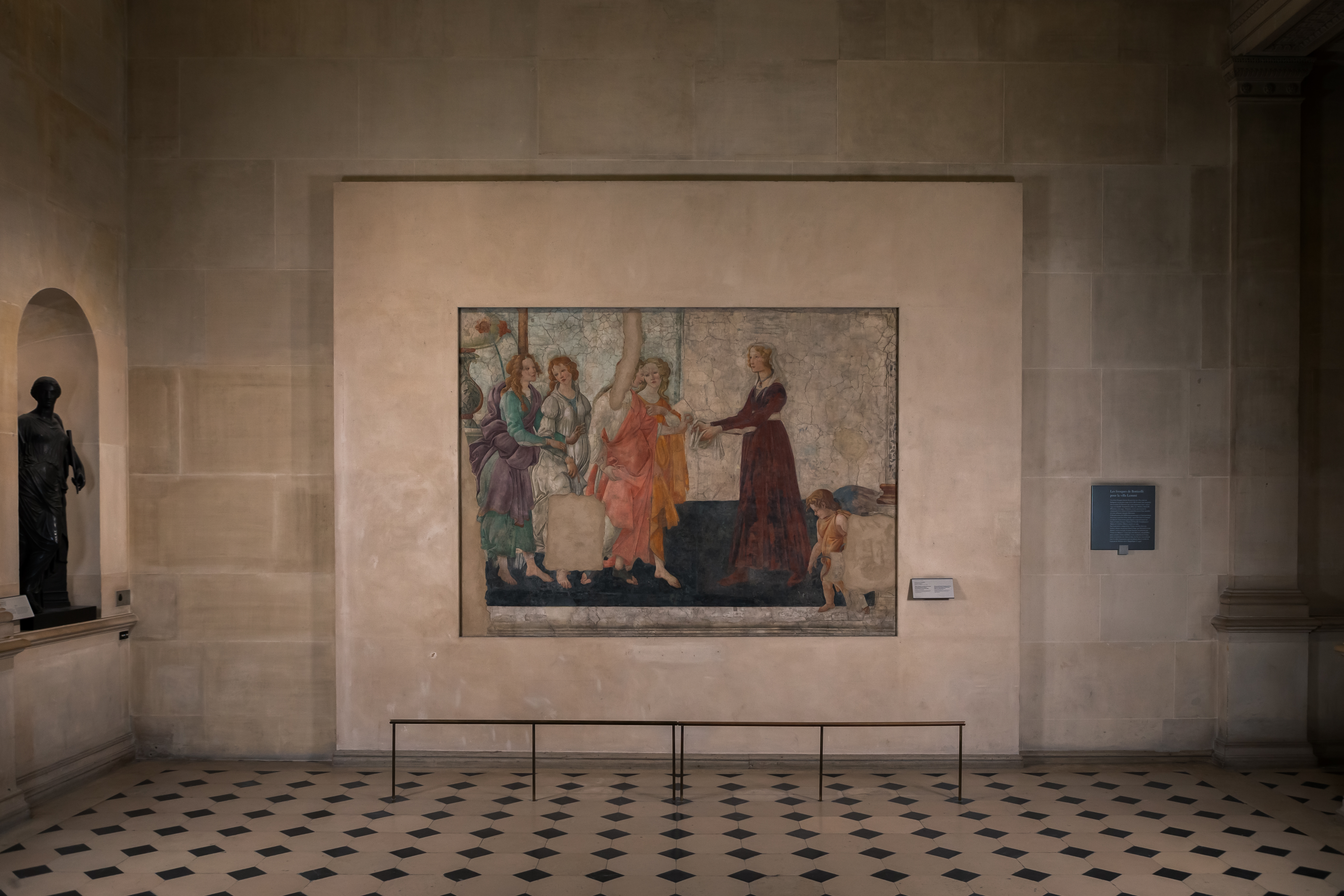 "Vénus et les Trois Grâces offrant des présents à une jeune fille" (1475) by Botticelli, showcased at the Louvre as part of De Toutes Beautés!, an exhibition exploring the connection between art and beauty, made possible through a cultural mediation partnership with L’Oréal. Photo by Nicolas Romieu. Courtesy of L'Oréal Groupe