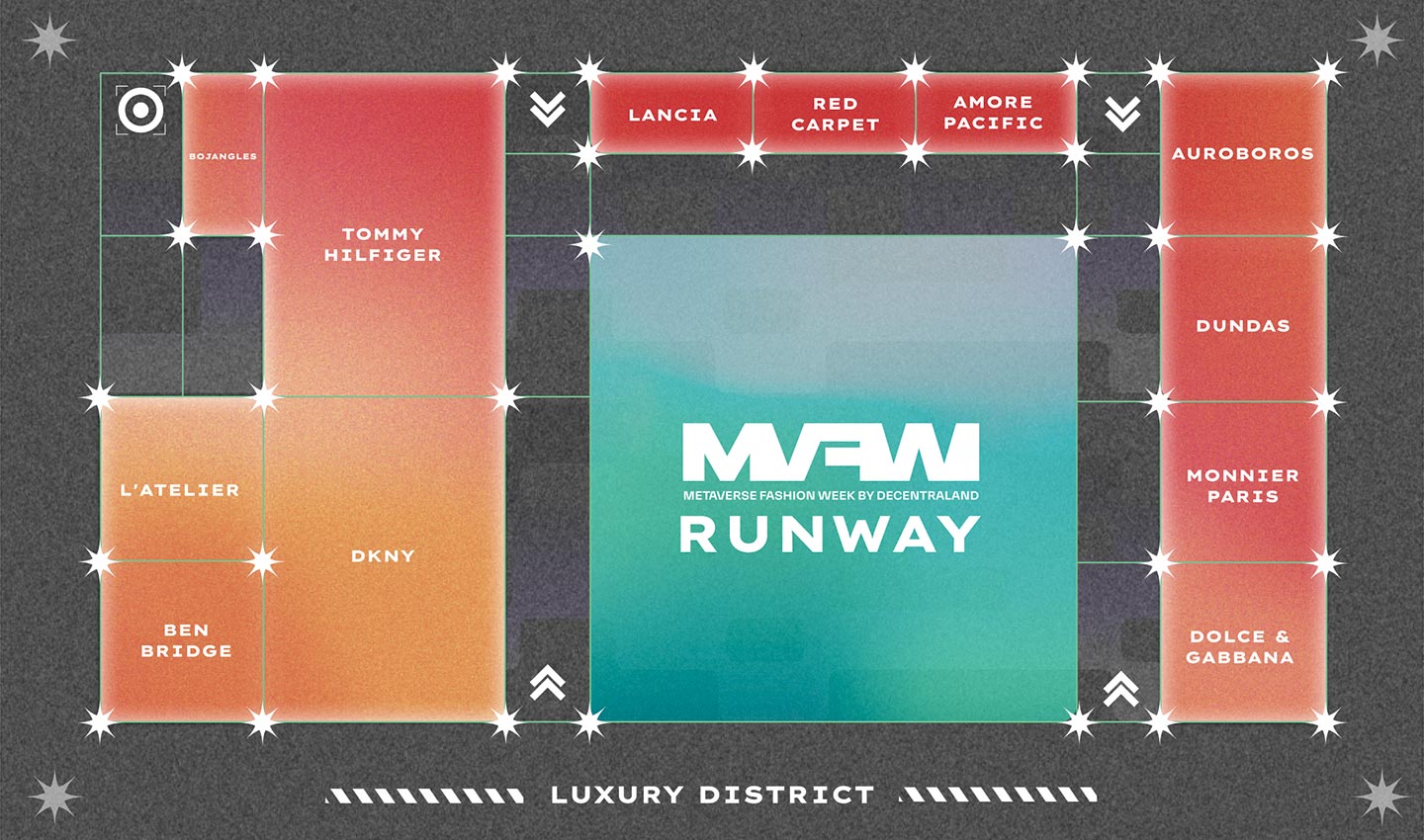 The heart of fashion in Decentraland. The UNXD Luxury Fashion District was where global fashion brands displayed their virtual storefronts during MVFW23