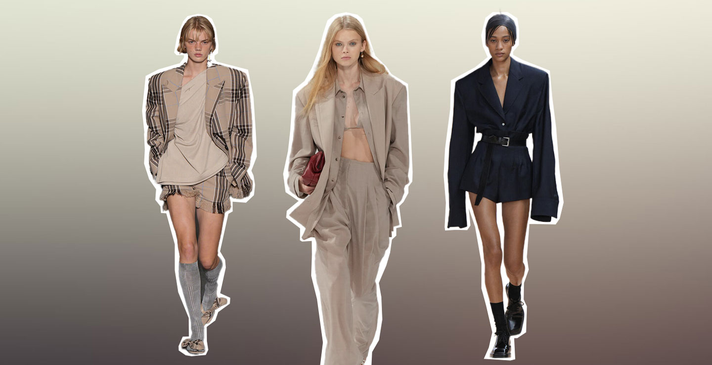Whether balanced by a narrow waist, emphasised by tailoring, or combined with bias cuts, boulder shoulders remain a staple for Spring-Summer 2024. At MSGM, Massimo Giorgetti focused on a tailored tartan blazer, which makes the shoulders even more evident. Prada’s Miuccia Prada and Raf Simons duo went for a tailored silhouette with broad shoulders as their starting point, sometimes paired with short shorts and a marked waist. Finally, Philosophy’s Lorenzo Serafini came up with strong shoulders in a comfortable version, with a soft-line suit appropriate for both everyday and evening occasions.