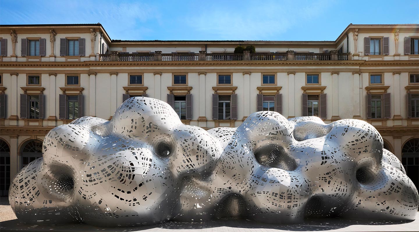 Marc Fornes realised an organically shaped pavilion at Milan Design Week to accompany Louis Vuitton's latest Objets Nomades furniture collection. © Louis Vuitton
