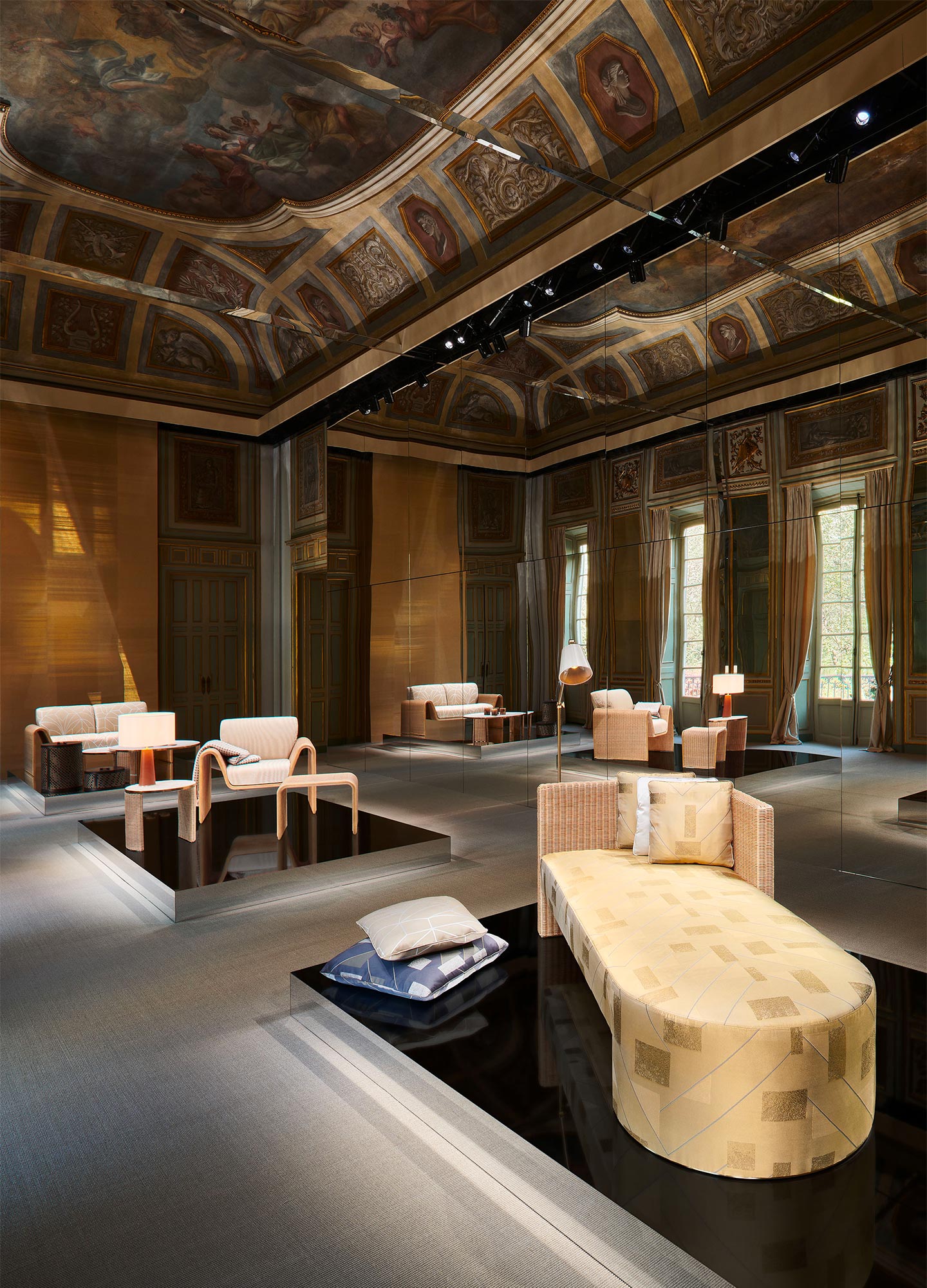 The frescoed rooms, usually reserved for Haute Couture, were the setting of the Armani/Casa a Palazzo exhibition. © Photography by Federica Bottoli, courtesy of Giorgio Armani