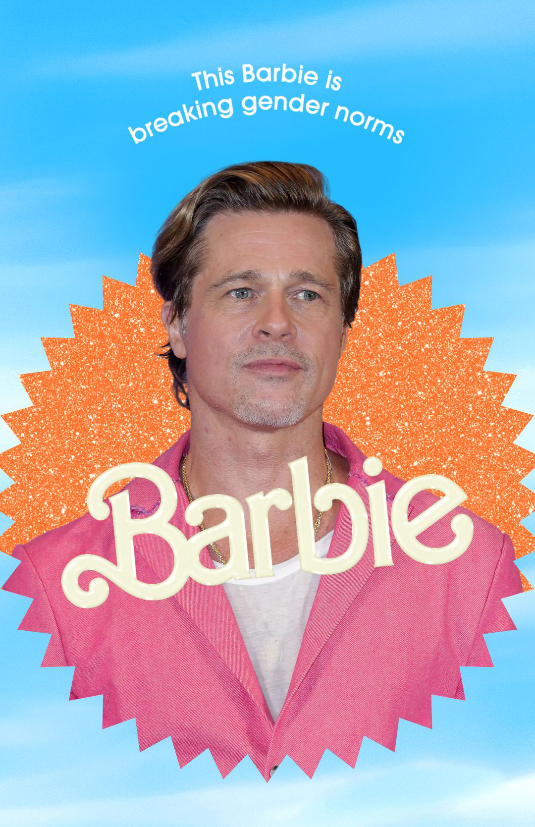 Created with the Barbie Selfie Generator, this artwork shows Brad Pitt in a Kencore mood