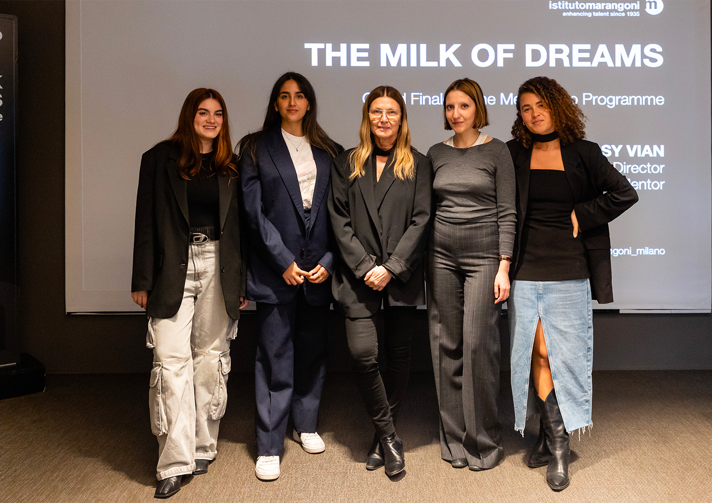 Sissy Vian with the best 4 IM students, who created their slipdress as part of the mentorship project “The Milk of Dreams”