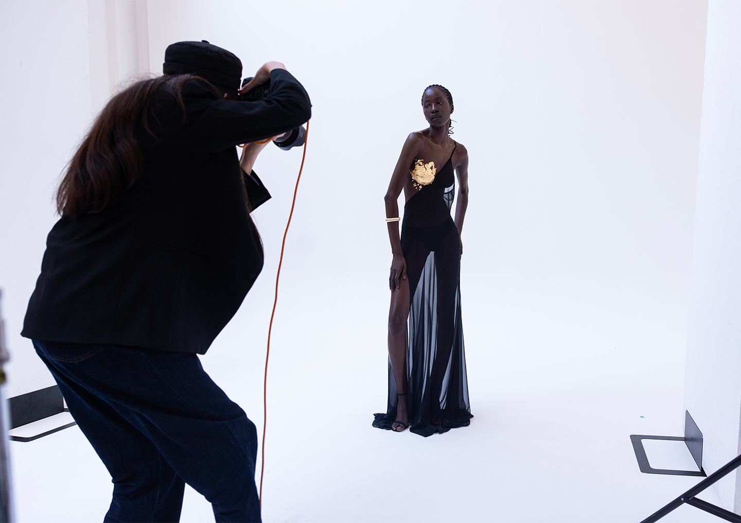 A backstage moment from the shoot by Istituto Marangoni Fashion Styling Masters student Maria Storino