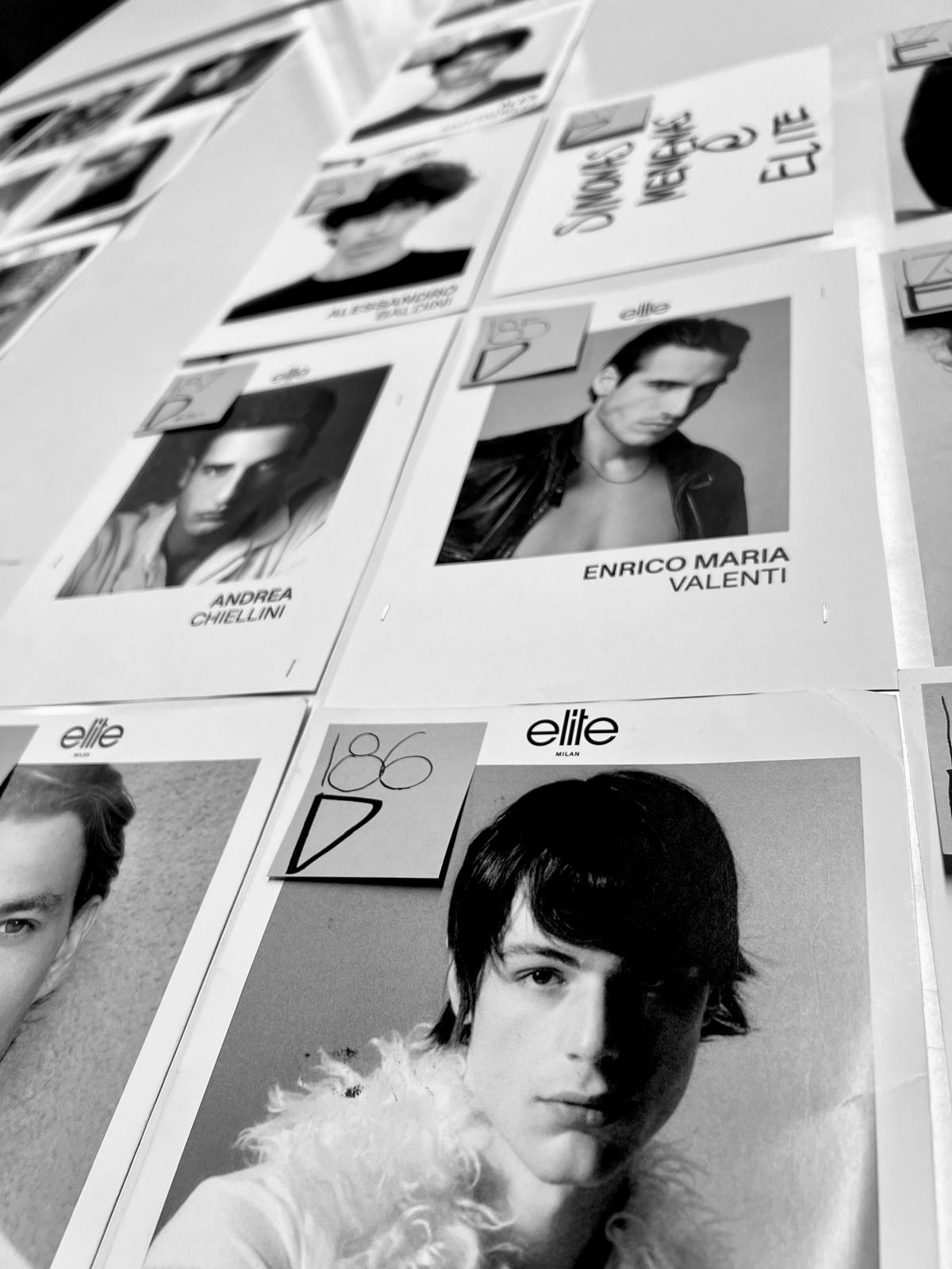 Model cards set out for casting, forming the story of the XC | 90 graduate fashion show