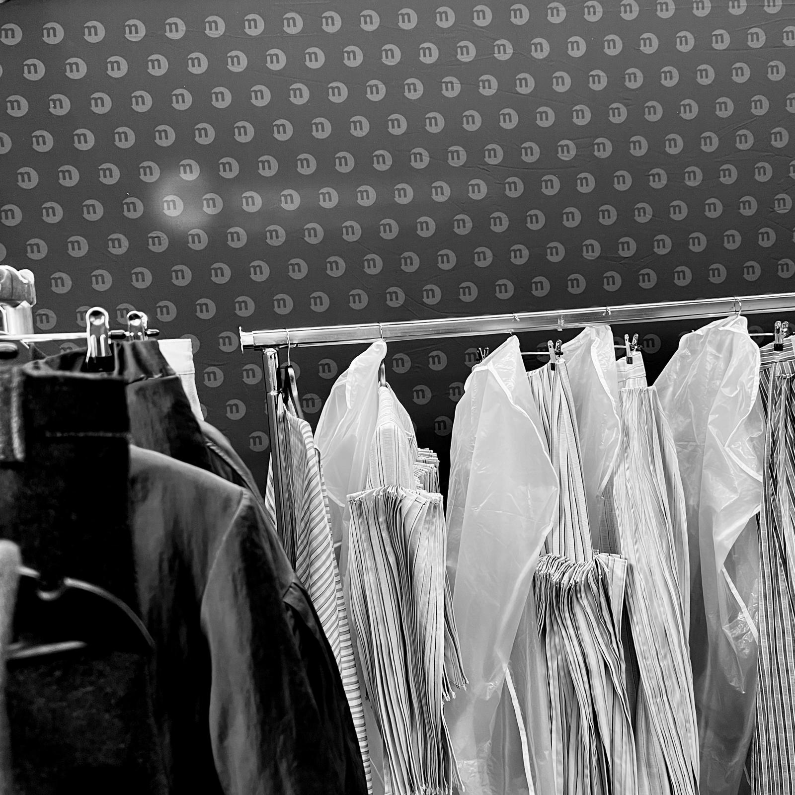 Garments prepared backstage at the Istituto Marangoni Milano fashion show 2025
