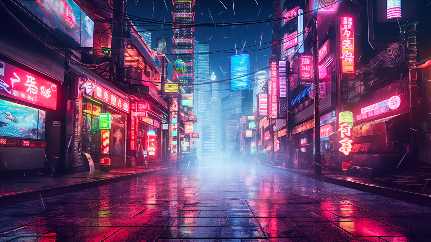 The AI-generated visual setting, like this Shanghai background, is powered by Monogrid