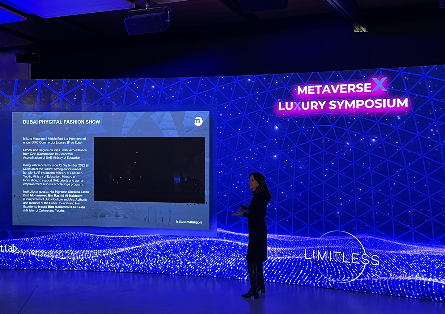 At the first Metaverse X Luxury Symposium in Milan, Istituto Marangoni's Managing Director Stefania Valenti presented the school's metaverse, The Talent District