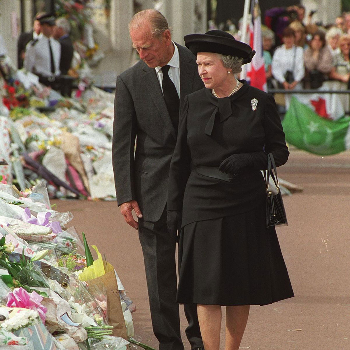 Queen Elizabeth II and the Duke of Edinburgh at Princess Diana's funeralin 1997