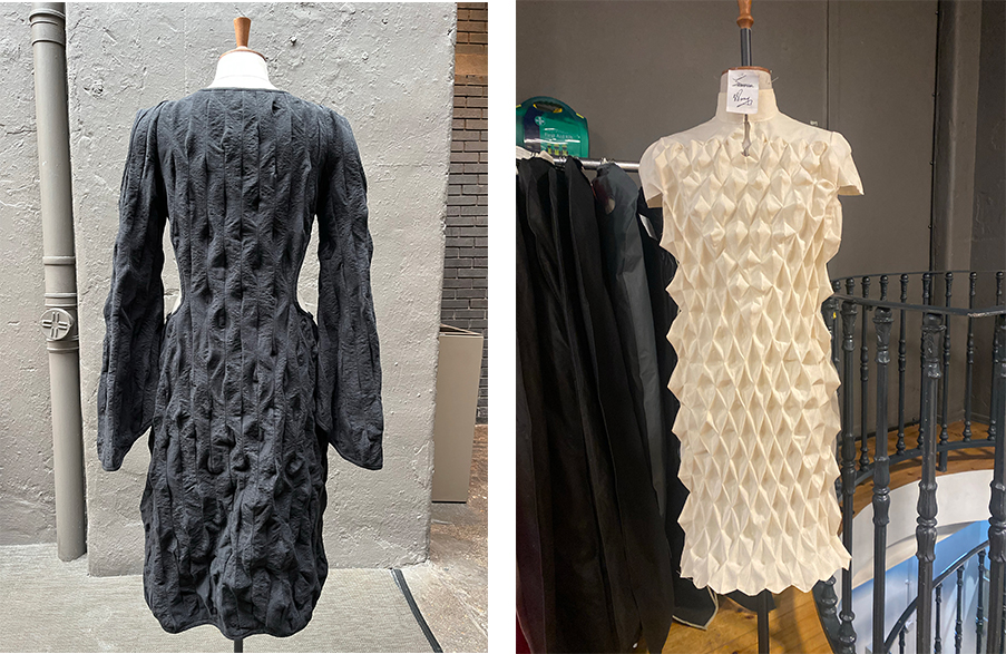 I hope to incorporate my previous texture designs more organically into commercial clothing. The calico dress was my first-term work. I created the texture in 2019 as part of my application for the Master’s in Fashion Design at Istituto Marangoni. At the same time, it can be developed into a zero-waste design, but it is still far from commercial use.