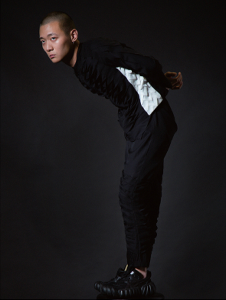 Weihuai Zhang. Actually, the model wearing the other three looks was also a classmate of mine. They did not collaborate with me on the creative direction; they just modelled. It was Nick Clements, our tutor and photographer, who recommended that I cast Weihuaiso when I asked him for help.