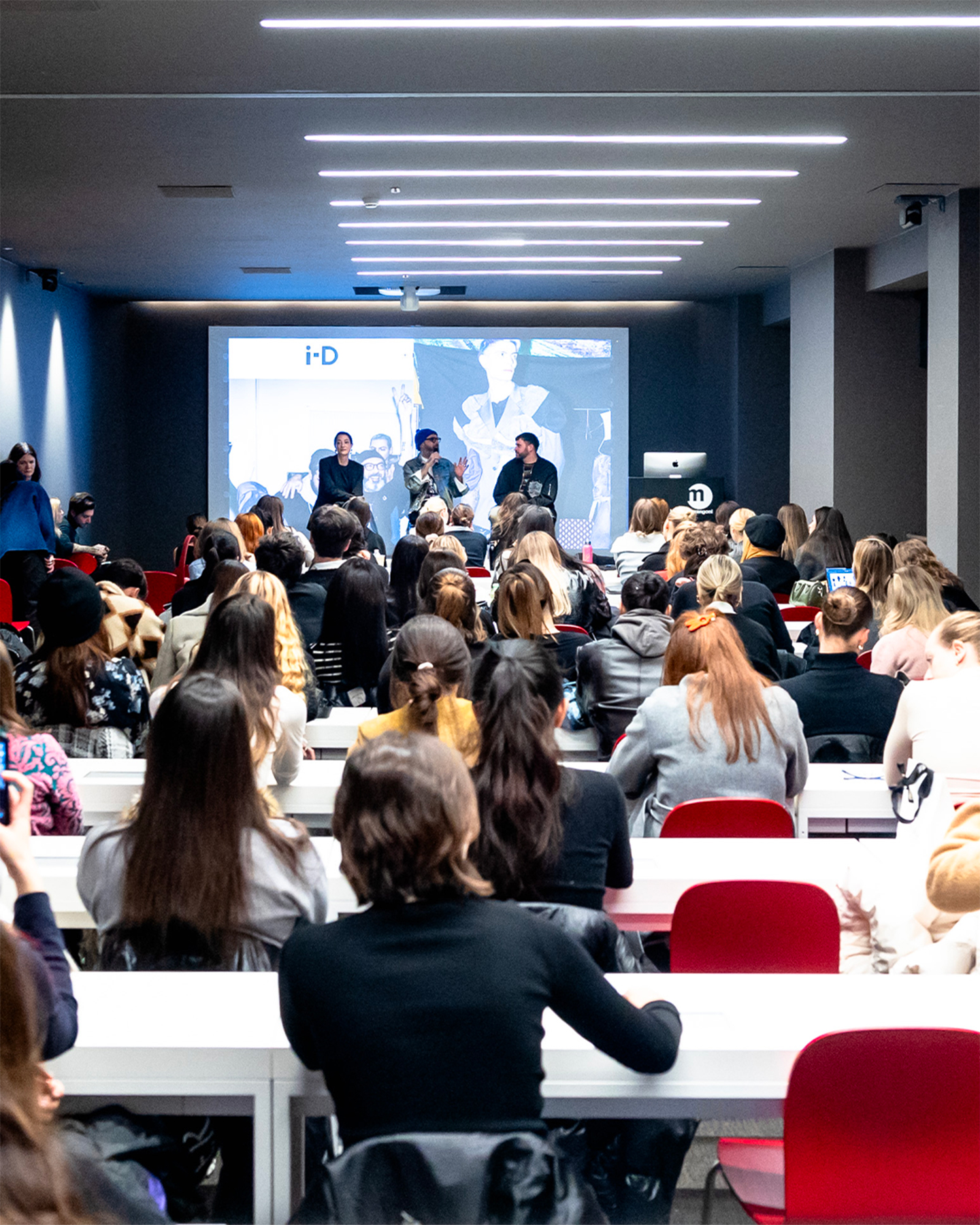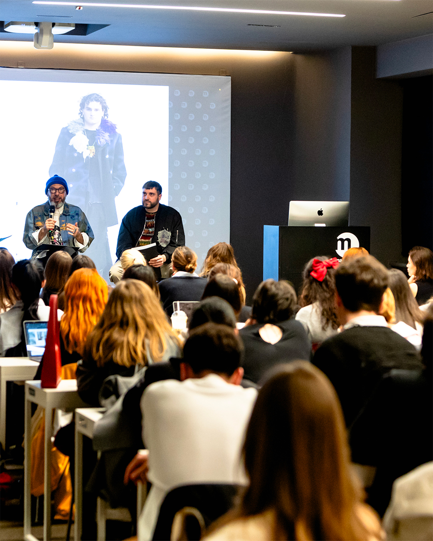 Students attending the talk hosted by Istituto Marangoni Milano with Simone Botte and Filippo Leone Maria Biraghi, the creative duo behind Simon Cracker