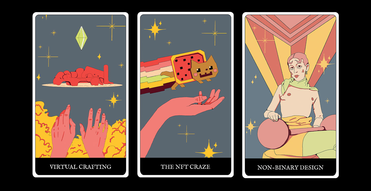The project drew on the research conducted during the 2020/2021/2022 academic years by students from the school’s three departments: product, visual and interior design. This enabled the team to identify five macro drivers of change with huge cross-sectoral relevance, called “major arcana”, and fifteen contemporary design trends, the “minor arcana”.