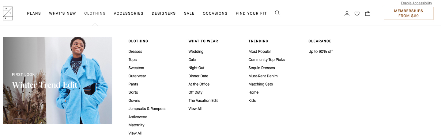 From renttherunway.com: Rich sub-categories and designer brand cooperation resources