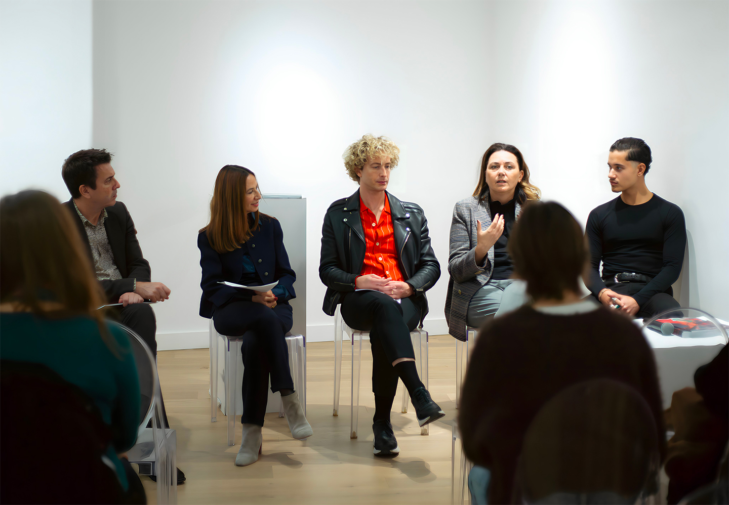 The round table organised by Istituto Marangoni Paris to mark the opening of the Rives de la Beauté international event in the French capital. From left to right, experts Wouter Wiels, Silvia Manzoni, Damien Rousseaux, Susanna Nicoletti and IM alumnus Luciano Piunti