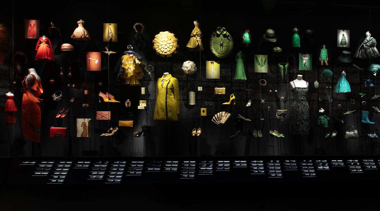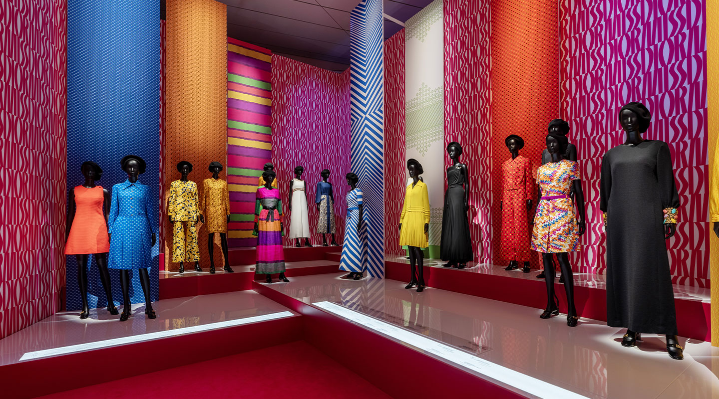 A central theme of the “Christian Dior: Designer of Dreams” exhibition is the revolution of prêt-à-porter and the vibrant atmosphere of 1960s Paris, when Dior launched its first ready-to-wear line, Miss Dior. The exhibition is set against a playful, pop-inspired backdrop that captures the enduring spirit of this dynamic era.