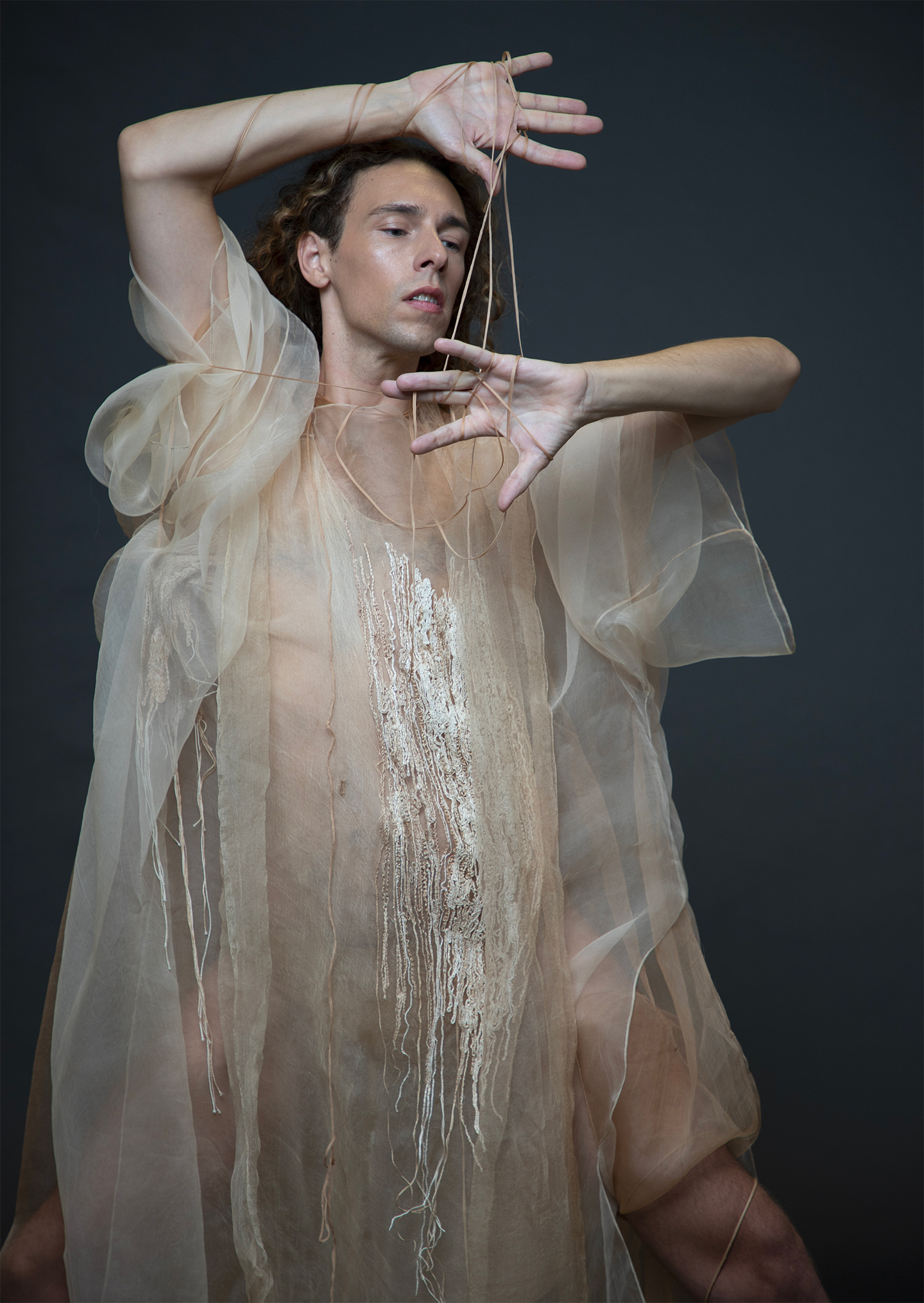 The pictures below feature Spurgin’s work, interpreted in a performance by fellow Istituto Marangoni London tutor Matteo Augello.