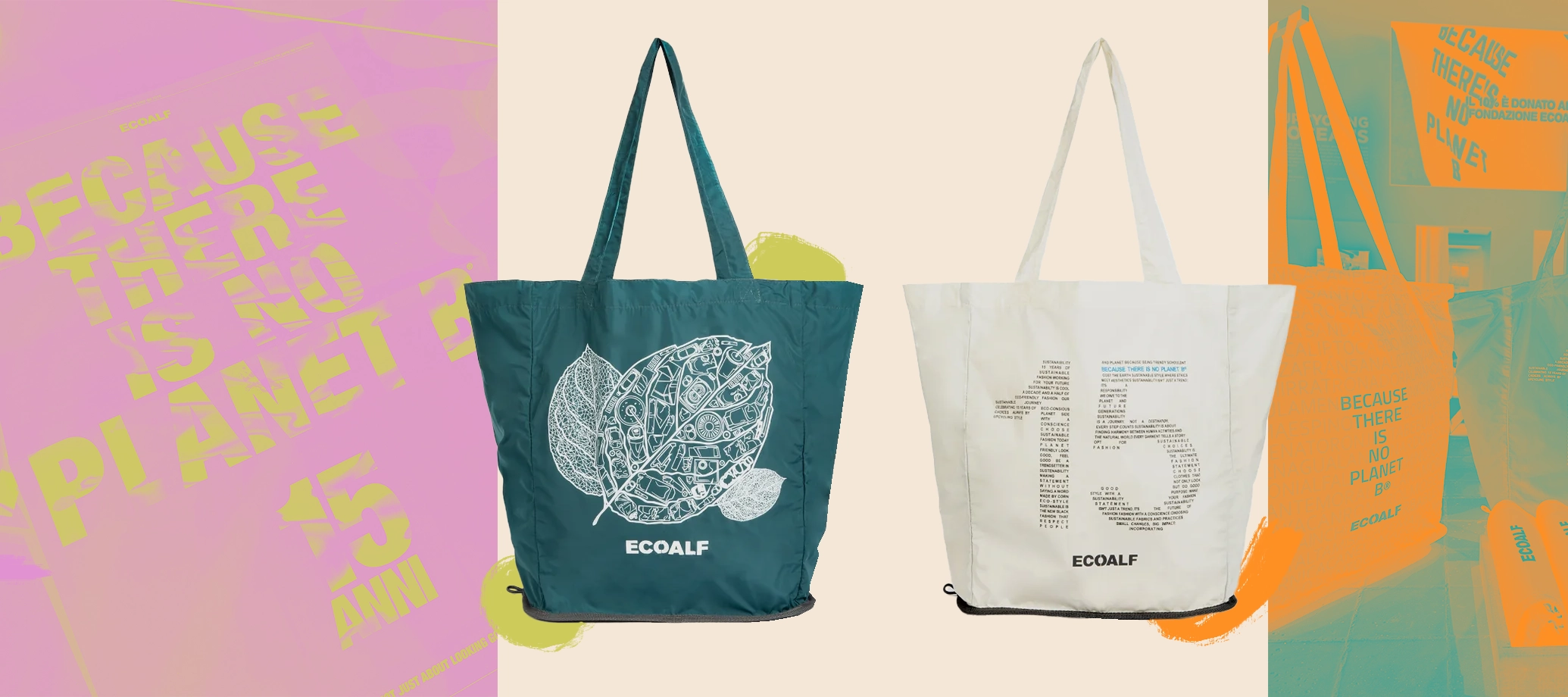 Ecoalf celebrates its 15th anniversary by teaming up with Istituto Marangoni's I'M Alumni community to create a capsule collection of "Because There Is No Planet B®" shopping bags