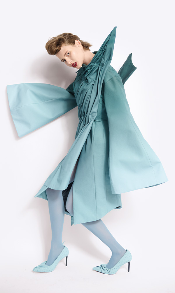 The garments draw from rural traditions and early memories, reimagined through playful proportions that shape new stylistic archetypes. Outerwear-inspired silhouettes, designed for movement and protection, transform into fluid forms layered with memory and cultural echoes.