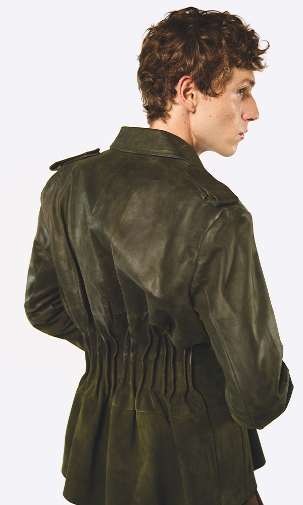 The inspiration stems from the 1937 British military uniform — a symbol of authority. Its structured form is reinterpreted through tailoring techniques to reveal a restrained, underlying tension.