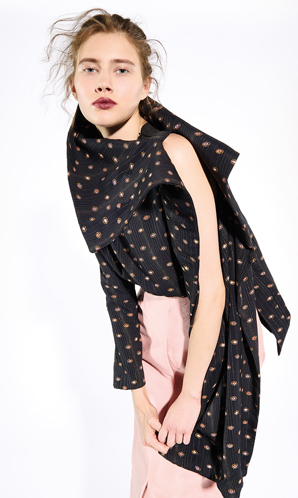 Deliberately off-balance, yet meticulously composed. Imperfect by choice, precise in design. Each garment becomes a fragment in an emotional mosaic where madness meets harmony, contrast hides a secret coherence. Seams trace silhouettes in flux — suspended between the glamour of the past and the infosphere of the future. Nothing aligns, yet every element finds its meaning.