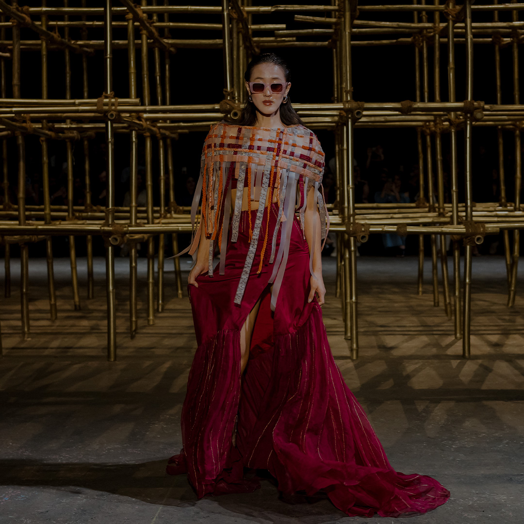 The exhibition brings to life the physical installations featured in a live fashion show held earlier this year, transcending geographical barriers and democratizing access to emerging fashion talent.