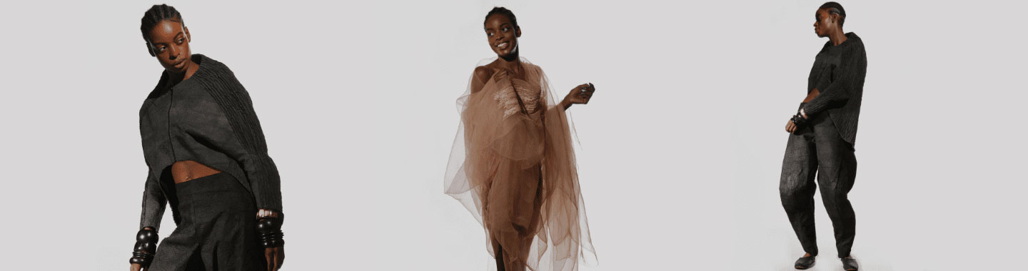 Through fieldwork in Uganda, natural dye experiments, extensive laboratory testing, the researchers explored the slow, regenerative processes around tending mutuba trees and harvesting and making bark cloth in Uganda, an indigenous, endangered textile and part of the Intangible Cultural Heritage of Humanity. Stiff, uneven and weak in its original form, bark cloth was processed and blended with cotton to enhance drape, texture, handle, and strength. The project also involved a holistic design strategy that synergises the characteristics of bark cloth with the body’s biomechanical requirements, and leveraging its potential as a restorative, slow fashion textile through the creation of a series of luxury fashion garments.