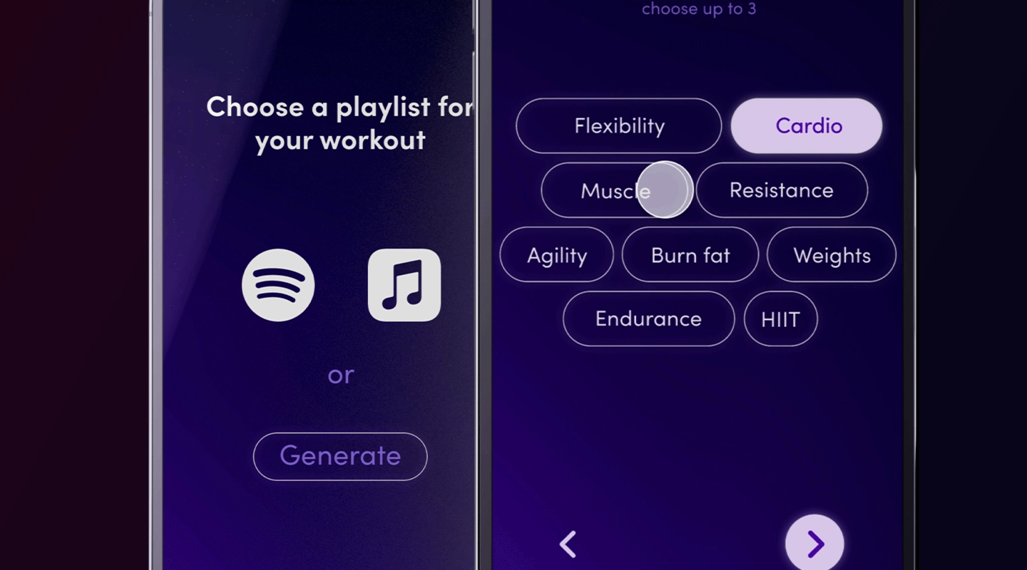 By logging users' body features, fitness goals, dietary intake, equipment, time availability, and leveraging motion capture for movement recognition, it generates movements to suit every individual need. Exercises are synchronized to specific rhythms, AI-generated.
