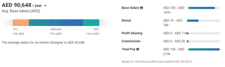 Figure 1: average yearly salary for interior designers in UAE (payscale.com)